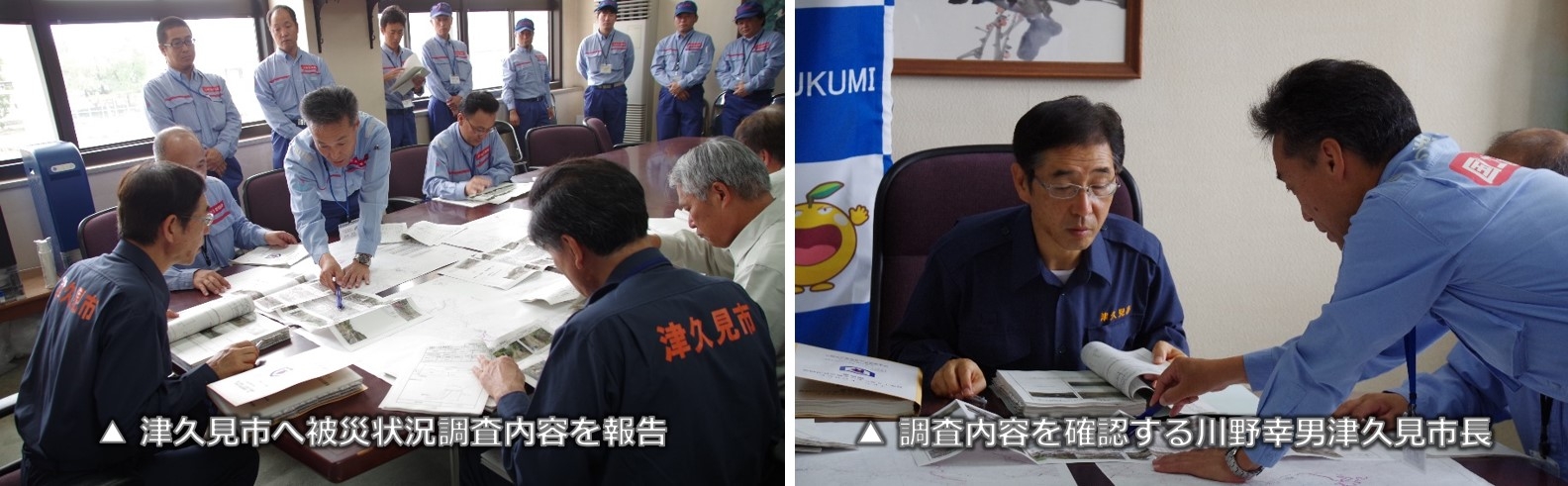 被災状況調査を完了したTEC-FORCEが、調査結果をとりまとめ、津久見市長に被災状況調査内容を報告しました。