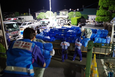 ![]() ▲益城町役場で支援物資を積み卸し |