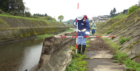 熊本県からの要請を受け、熊本県管理河川の被害状況調査、復旧方法の提案などを行っています。