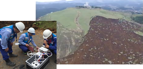 国道443号の調査・技術指導や工事監督支援、国道57号代替ルート確保のための調査・道路啓開などを行っています。