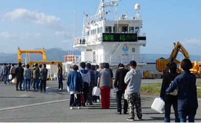 ▲熊本港内での飲料水の提供