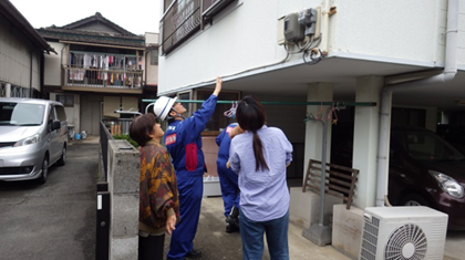 被災建築物の応急危険度判定を加速化するため、民間建築士の方々や地方公共団体の職員とともに被災建築物の応急危険度判定を行っています。