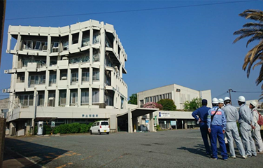 ![]() ▲宇土市役所の被害状況を調査 |