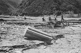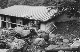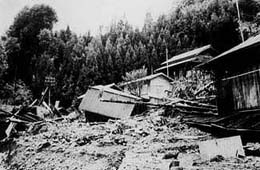 昭和38年8月17日9時頃から集中的に襲来した豪雨は、九電五木川第2発電所の観測によると12時から13時までの時間雨量140mmに達するという空前の降雨となり、川辺川水系の五木村、相良村においては、随所に山津波が発生し、山津波と濁流は、尊い多数の人命と、貴重な施設、住家、山林、田畑を流し去った。