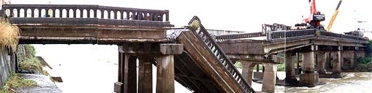 - 橋梁上部工落下(P4~P5径間桁・床板)