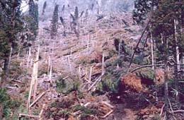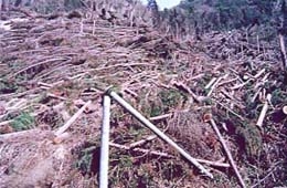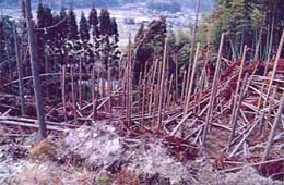 - 山林において多くの風倒木が発生