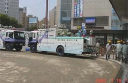 災害支援中の国土交通省ポンプ車 |