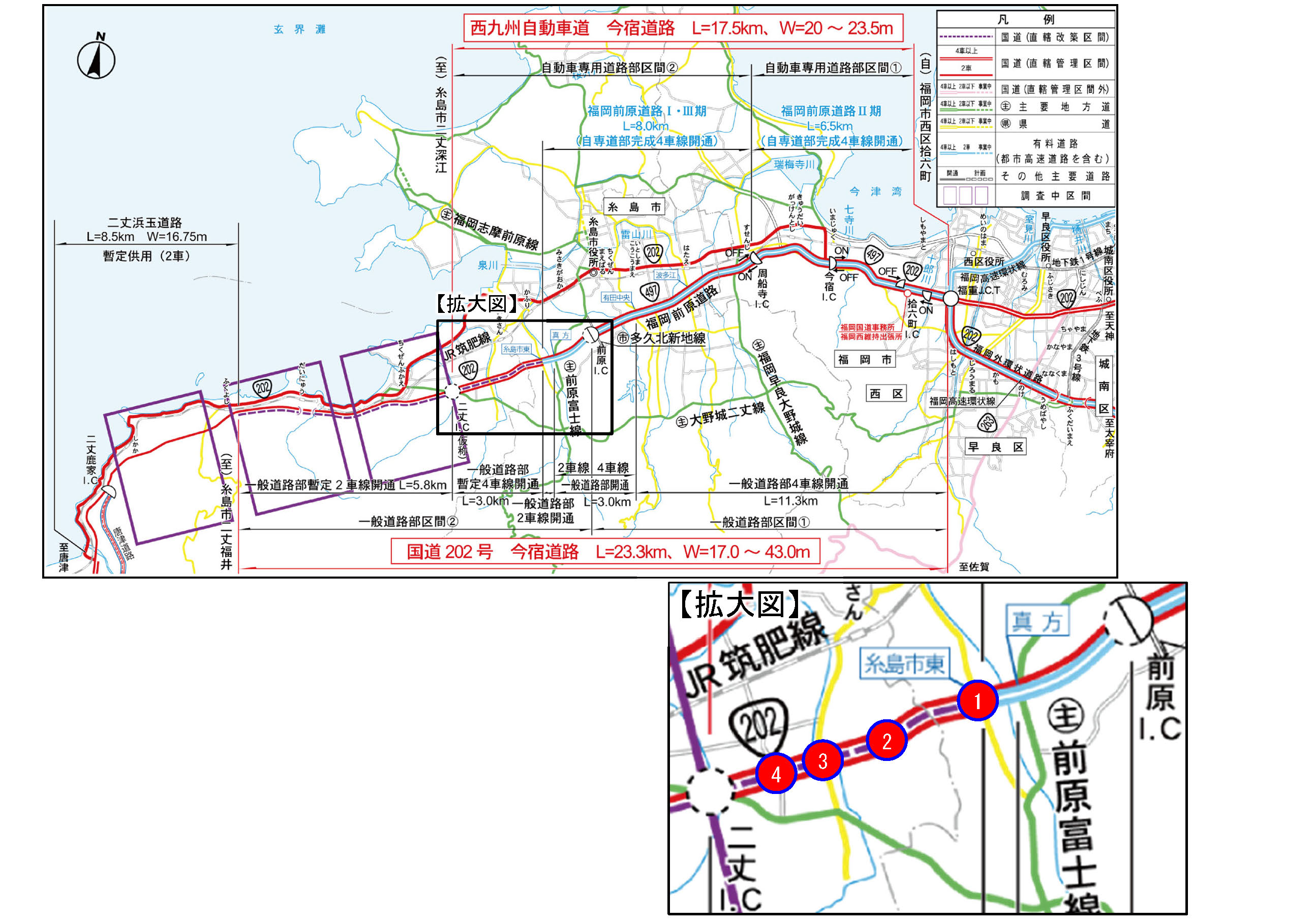 現在、今宿道路(国道497号 国道202号)で工事を行っている現場の状況です。