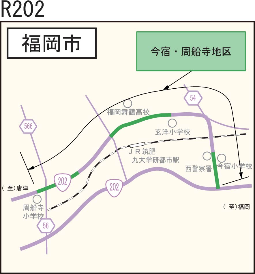 このため、地域の防災や景観形成等のために進めている当該区間(千早・名島地区)の無電柱化にあわせて、自転車通行空間を整備します。