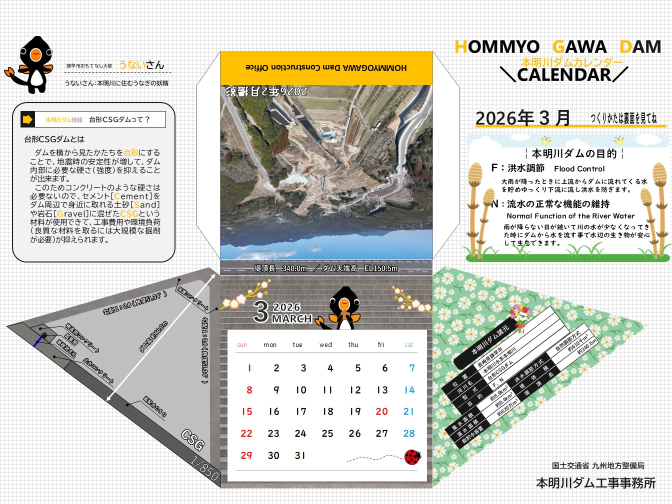九州初の台形CSGダムである本明川ダムの堤体を再現したカレンダーです。