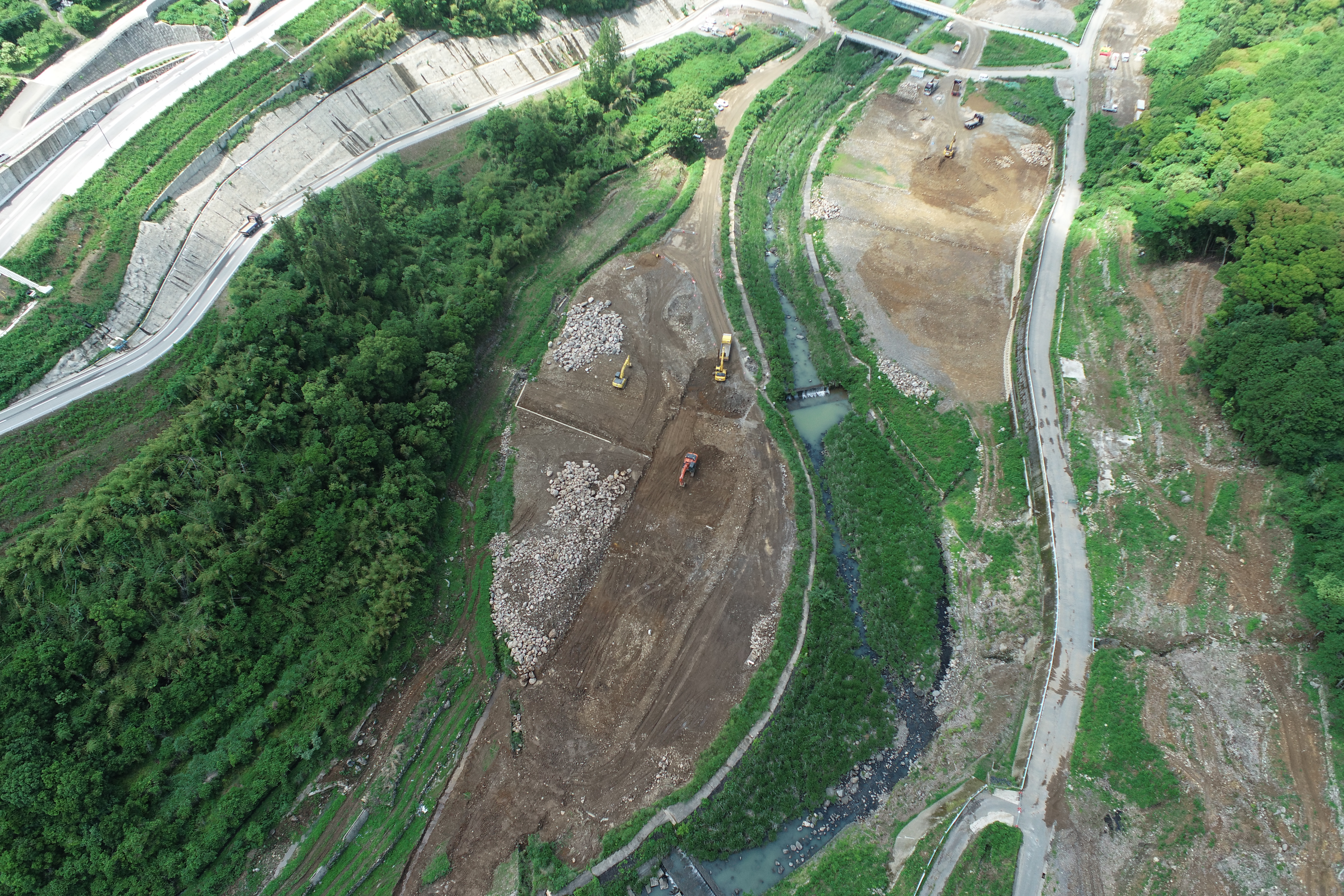 令和7年7月に川の流れを切り替える一次転流を行いました。