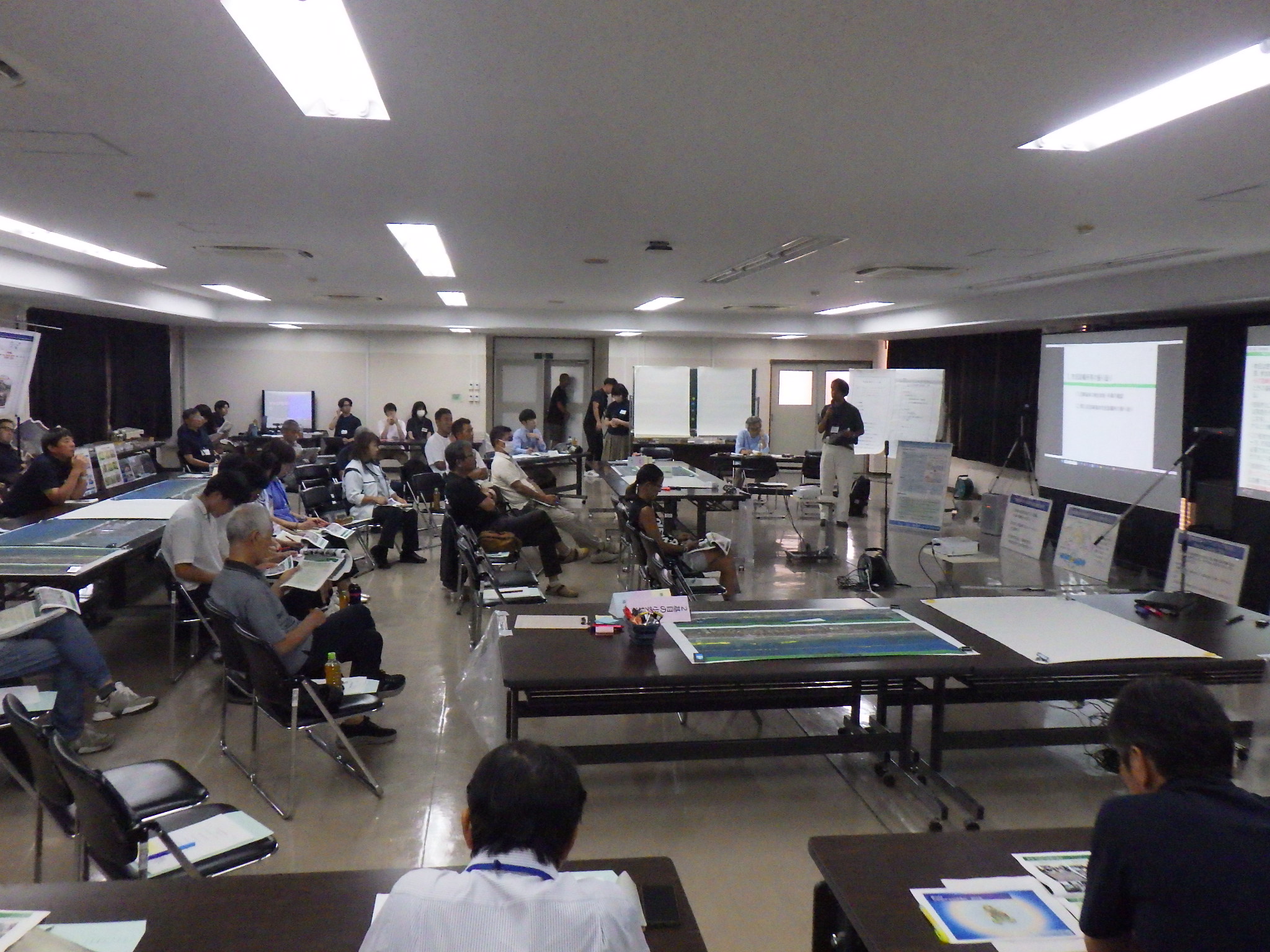今回の市民談義所では、当面の工事予定を説明した後にこれからの侵食対策事業として、動物園東エリアの砂浜を回復・安定化させるための対策や住吉エリアの方向性について談義をしました。