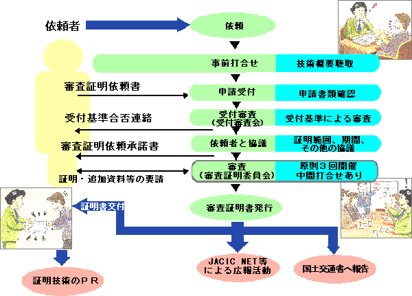 民間開発建設技術の技術審査・証明事業は、民間において自主的に開発された建設技術の活用を図るため、 民間開発技術の内容を国土交通省所管事業のニーズおよび技術指針等に照らし、審査・証明する制度として昭和62年度より始まりました。 建設大臣が認定した機関(平成13年度より,大臣認定を廃止.14公益法人の独自制度で事業展開) が審査・証明事業を推進し、実施方法の周知を幅広く行うことによって、 民間における研究機関の促進を図ると共に新技術の建設事業への適性かつ迅速な導入を促すことで、 建設技術水準の向上に資することを目的としています。