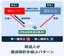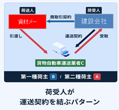 | 【例】着荷主である建設会社が工事現場で資材メーカーが手配したトラックで届いた建設資材を受け取る。 | |||||||||||||||||||