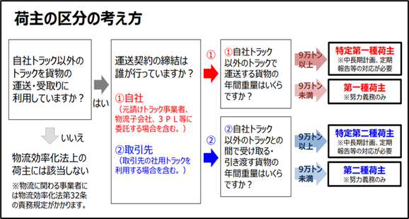 | ・第一種荷主と第二種荷主について (国土交通省・経済産業省・農林水産省 共同 「物流効率化法」理解促進ポータルサイト) |