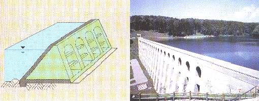 めのバットレスと呼ばれる擁壁(支えるための壁)からなるダムです。