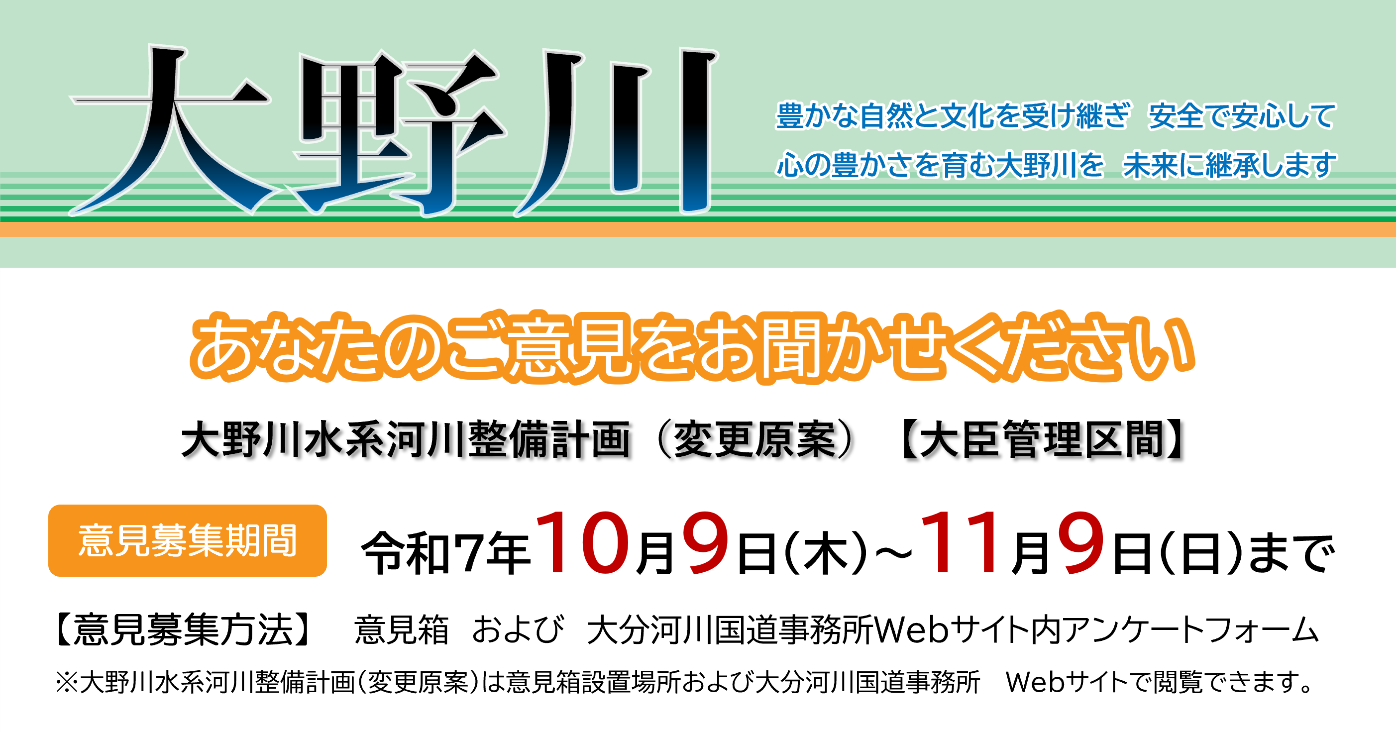 大野川水系河川整備計画(原案変更)について ご意見をお聞かせください