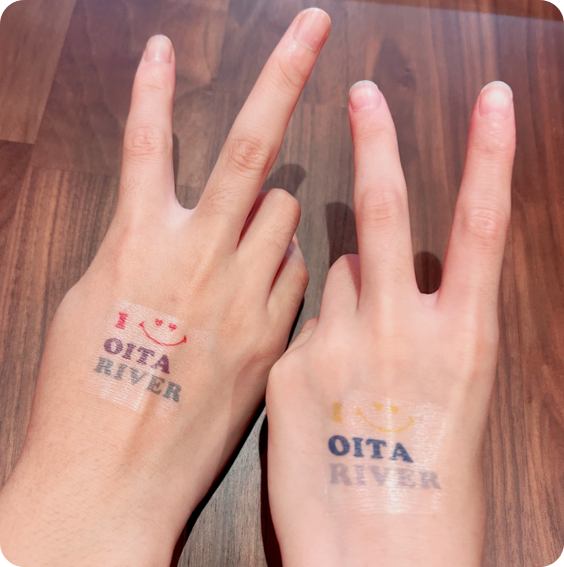 手や腕、顔など…好きなところにリバーフェスタオリジナルボディーシールが貼れるワンコイン体験。