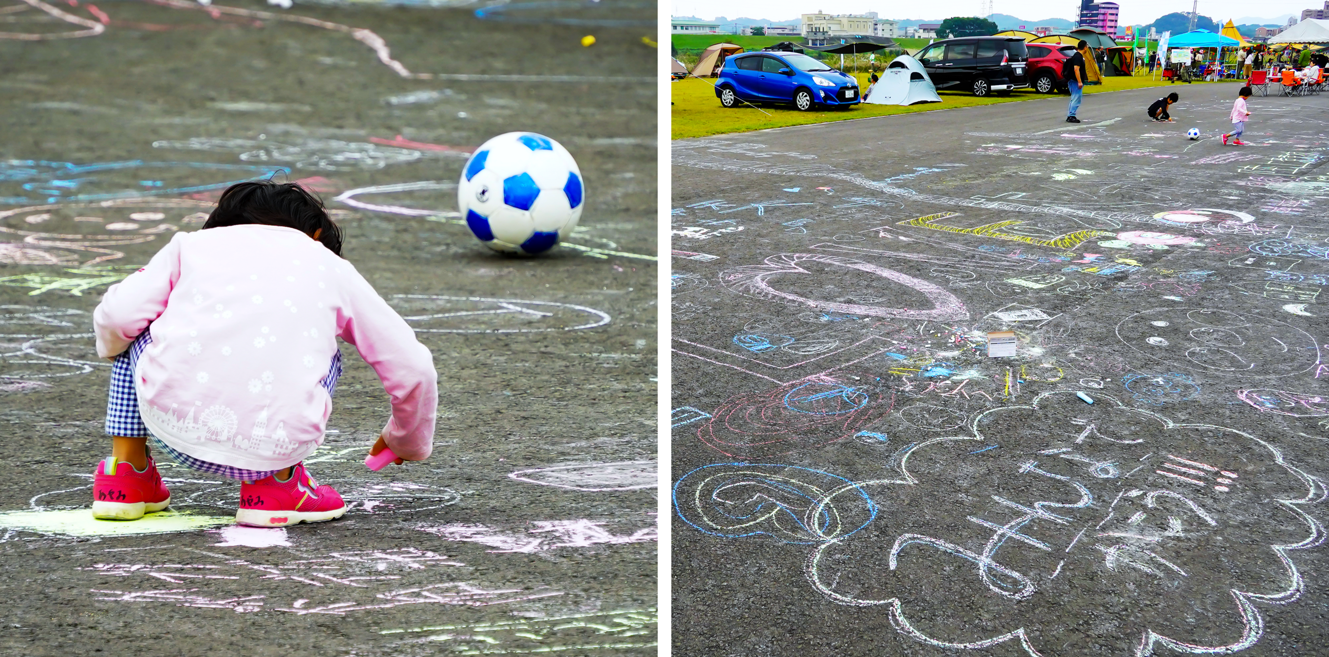河川敷チョークアート