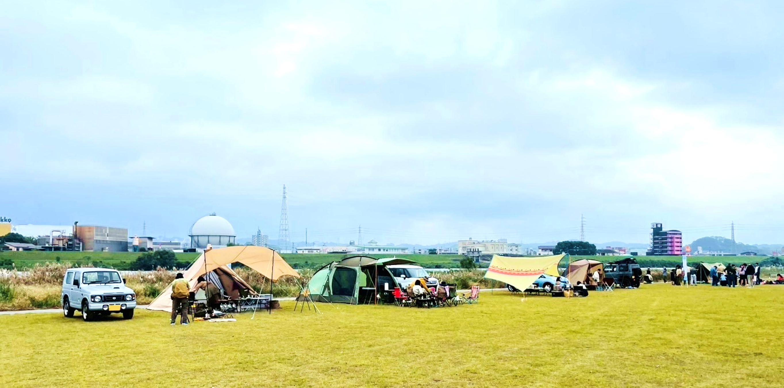 大分川の河川敷でBBQ!デイキャンプも楽しめる。