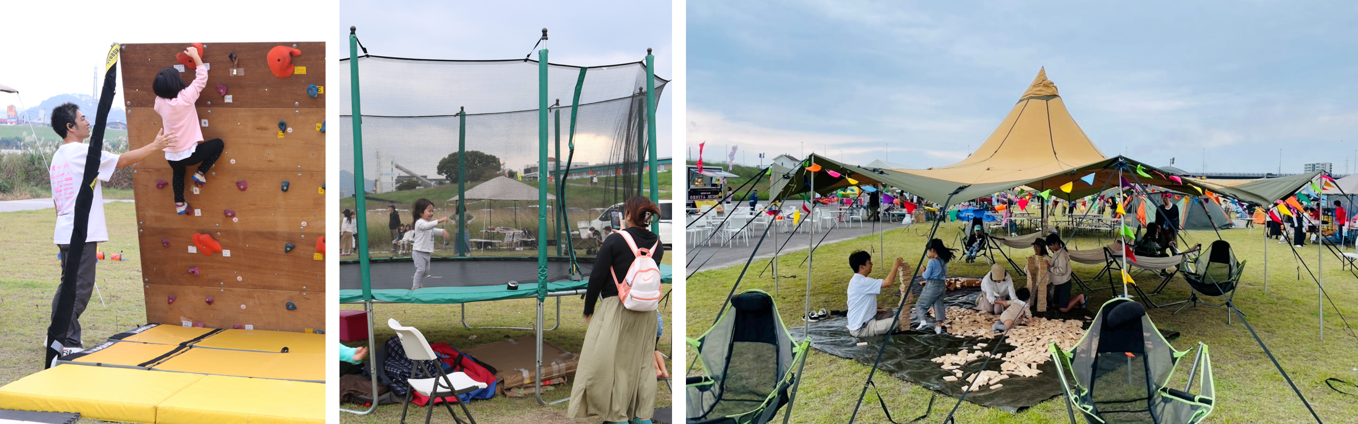 大人気の大型トランポリンやボルダリング、屋外でできる卓球やバレーボールなど、楽しいアウトドア遊具が無料で遊べちゃう!※一部有料