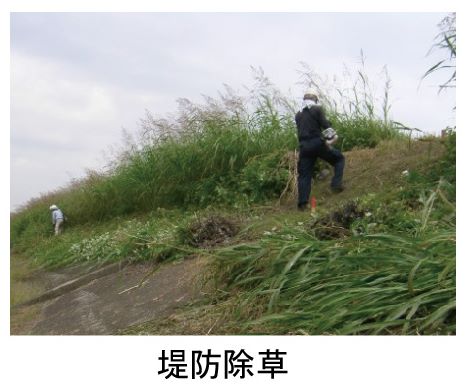 堤防の不具合を容易に発見できるよう除草を行い安全性を点検します。
