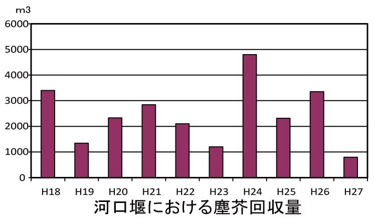 河口堰で回収するゴミの6割は塵芥捕捉施設(網場)で回収しています。