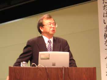 第1部は、国内外で防災の研究をなされている、京都大学防災研究所巨大災害研究センター長・教授の河田先生に「自助・共助による水害対策」と題して基調講演を頂きました。昨年遠賀川で発生した出水がどのようなものだったか、このような出水に対して「住民は自ら防災対策を考える努力が必要。」、「どのようなことが将来起きるか思いをはせないと被害に巻き込まれる。」や「地域ぐるみで防災対策を行っていかなければいけない。近所づきあいが大切。」などと、自助・共助の大切さについて講演されました。