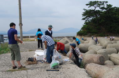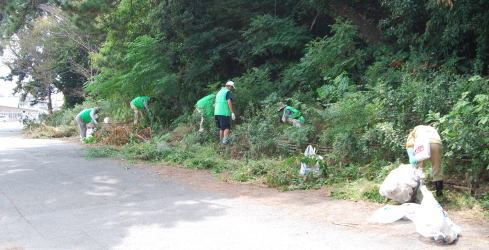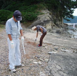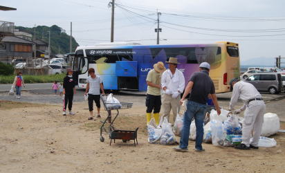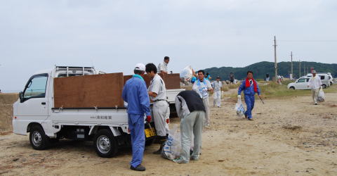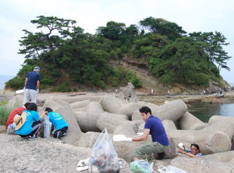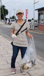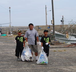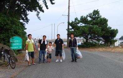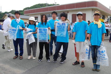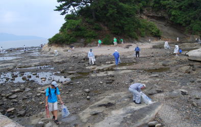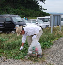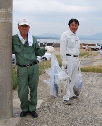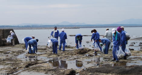 | 遠くになみかけ大橋が見える海岸線を清掃 |