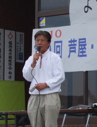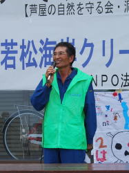 | お疲れさまでした。 参加した皆さんに感想などを話していただきました。 嘉麻市からふるさと探検隊の子ども達も参加いただき、「今、僕たちは環境問題に取り組んでいます。ゴミを捨てないようにしましょう。」と元気よく挨拶されました。 | |||