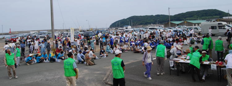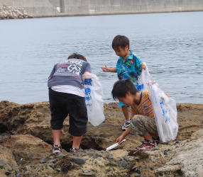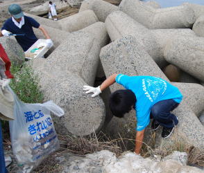 | 遠賀川に何気なく捨てたゴミが、河口堰や芦屋・若松海岸に流れ着き、漁船のスクリューに絡む被害や海岸の景観を損なうなど地元の皆さんに大変迷惑ををかけています。 そこで、上流の住民が1年に1回、海岸清掃を行う「芦屋・若松海岸クリーンキャンペーン」を行っています。9回目を迎えた9月19日(日)は550人の人々が4班(北九州市若松区岩屋海岸・夏井ケ浜海岸・洞山周辺・なみかけ大橋)に分かれて清掃しました。 潮の関係で海岸線に波が寄せてはいましたが、皆さん丁寧にゴミを拾っていただきました。 しかし、波消しブロックの間や草むらの中にはたくさんのごみが隠れていました。また潮に乗ってきた韓国のゴミもありました。 今後、遠賀川の上流に住んでいることを意識し、川をきれいにしていきたいと、流域の各地で、清掃活動が行われます。 |