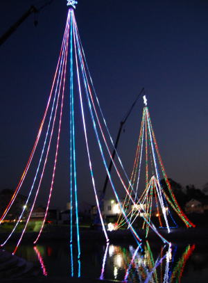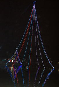 | 私たちのふるさとの川、彦山川などは、やすらぎのオープンスペースであったり、飲み水や農作物等に利用される貴重な水資源でもあります。 しかし、河川はゴミの投棄や生活雑排水等で汚れて、かわいそうな状況です。少しでも川のゴミや汚濁を減らして、私たちの子や孫に誇れるふるさとの川として伝えていきたとの思いで、彦山川を愛するボランティア団体の主催で、河川美化の啓発及び活動状況の展示普及のため、河川敷にイルミネーションが設置されました。 イルミネーションは3基設置され、大きなもので高さが55mと巨体イルミネーションと、川面に映るツリーに、多くの人たちはその美しさに心が和むようだと感想がありました。 また、河川敷のゴミ問題を考えてもらおうと、テント内にはパネルを展示したり、来観者にパンフレットを渡し、きれいな川にしていきましょうと話されていました。 また子ども達にはお楽しみチョコが手渡され、クリスマスのイルミネーションは25日午後10時に終了しました。来年もこの風景が見られるといいですねと、参加者からの声。来年はもっときれいな川になっていることでしょう。 |