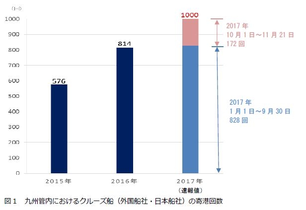 | 平成29(2017)年11 月21 日、九州管内におけるクルーズ船の寄港回数が初めて1,000 回を突破しました。 |