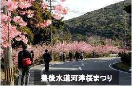 平成16年に3つの台風が来襲し、四浦地区は壊滅的な被害を被り、「四浦地区を元気にしたい、住民に希望を与えたい」との思いで、平成17年より河津桜の植樹を続け、延べ4,000 人のボランティアの手により4,600本もの植樹や維持管理を継続しています。 この取組みがきっかけとなり、各地区が連携して津久見市を「河津桜から山桜、ソメイヨシノと長期間桜観光できるまち」として売り出す活動に発展し、今年の豊後水道河津桜まつりには、71,000 人を超える観光客が訪れ地域が自信と誇りを取り戻すまでになっています。 |