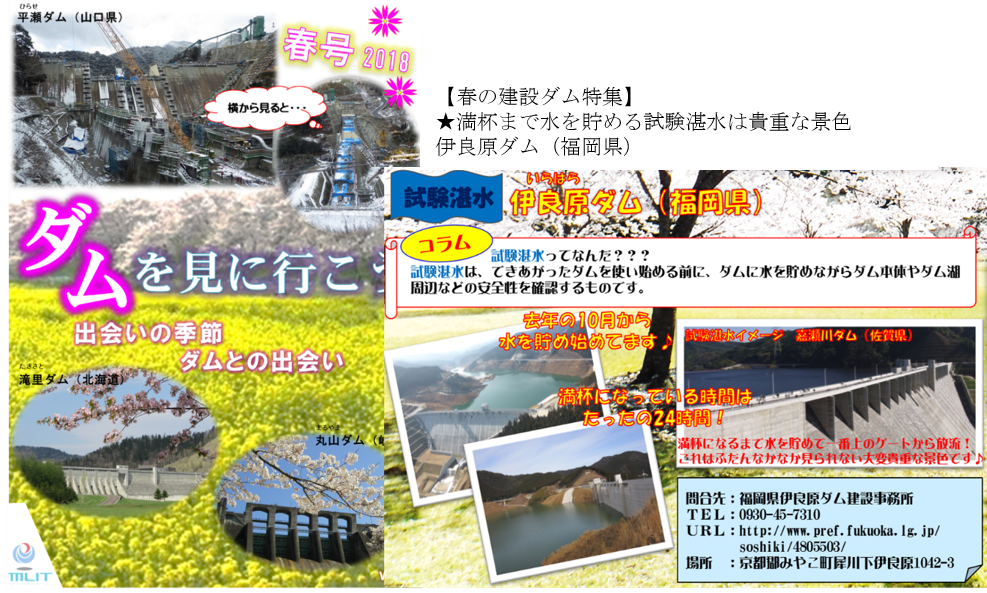 “ダムを見に行こう 春号2018”は以下URLでご覧頂けます。ぜひこの機会にダムを訪れて、ダムの壮大さや魅力を肌で感じ取って下さい。過去の“ダムを見に行こう”(2013~)についても以下URLでご覧頂けます。