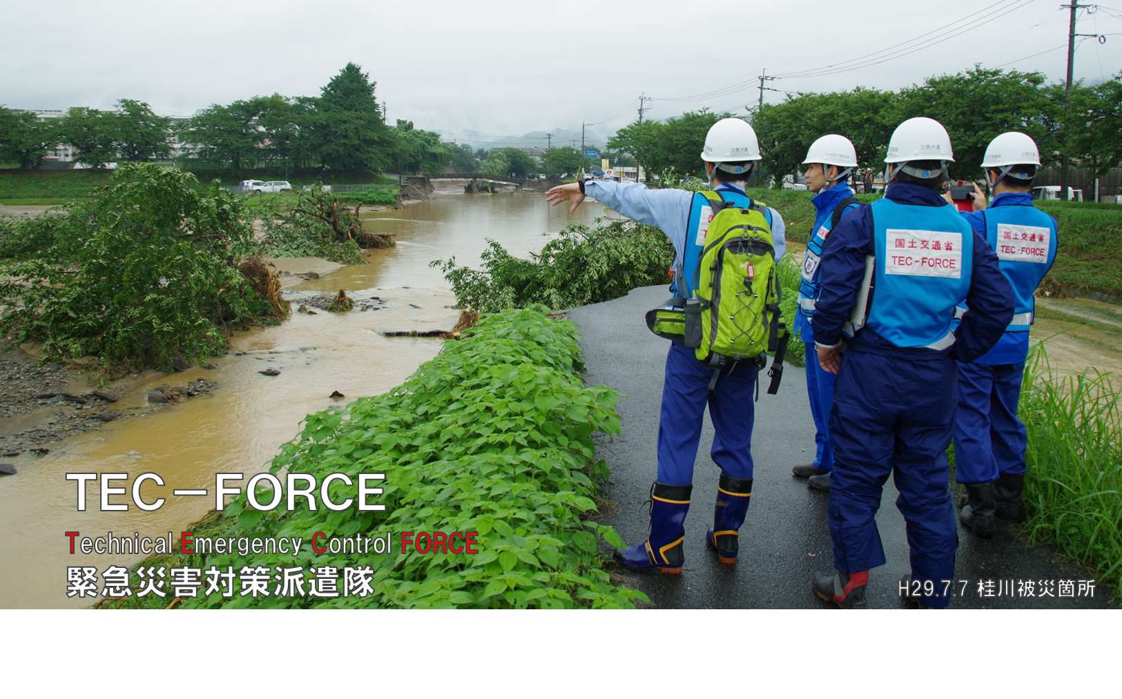 ※ TEC-FORCE(緊急災害対策派遣隊)とは大規模な自然災害に際して、被災状況の把握や被災地域自治体の支援を行い、被災地の早期復旧のための技術的支援を迅速に実施します。