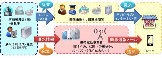 平成30年5月1日から、緊急速報メールを活用した洪水情報※1のプッシュ型配信※2を国管理河川 全20水系に配信対象をエリア拡大します。