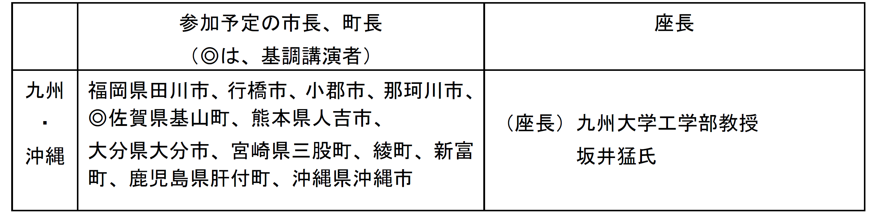 ○ 九州・沖縄ブロックでは、12団体の市長、町長等が参加する予定です。