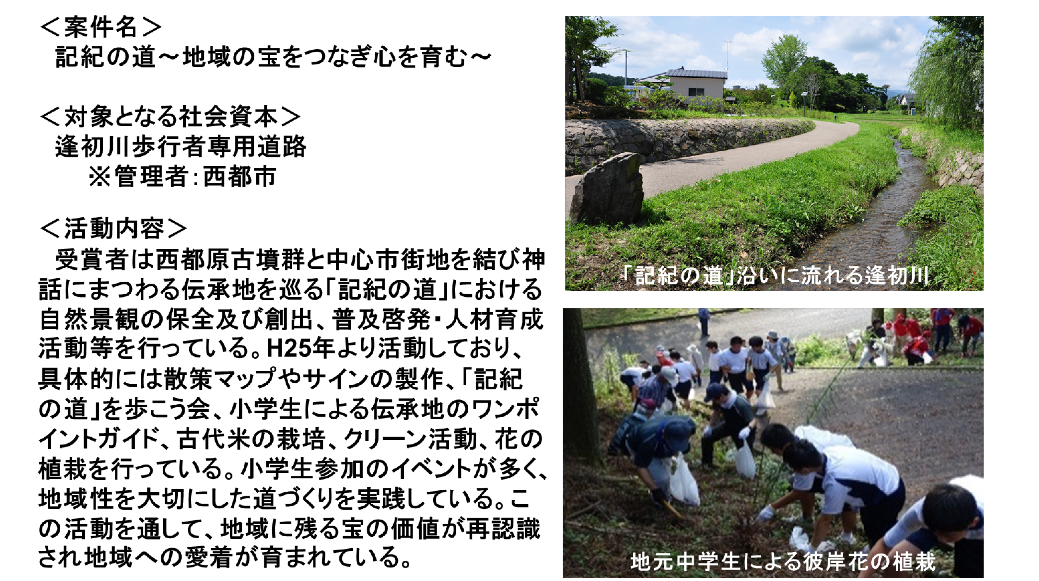 ■受賞者 : 妻北地域づくり協議会、西都市
