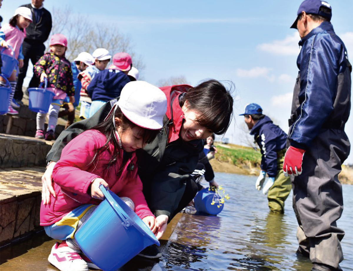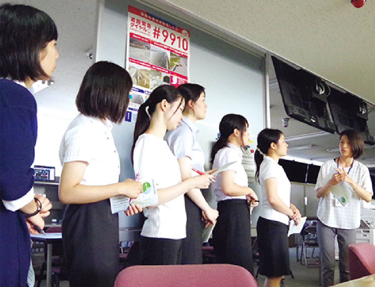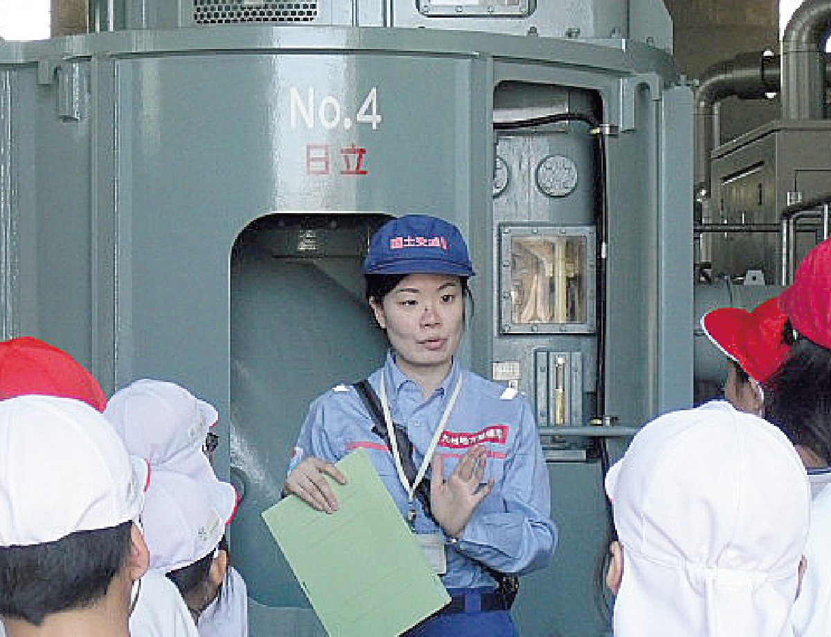 災害から身を守るために、小学生などを対象とした防災教育を行っています。また、地元の小学生の見学会を開催。ポンプ場がどんな役割なのか仕組みを学んでもらいました。