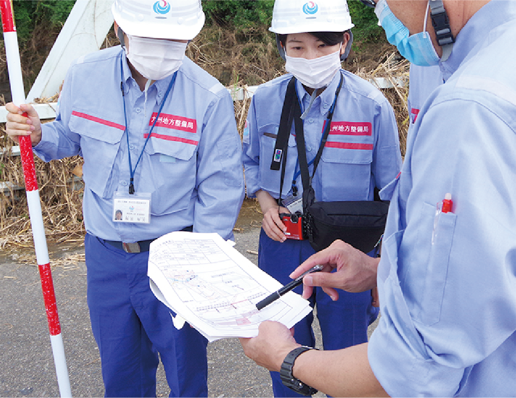 いきいきと働くことができる職場づくり九州地方整備局の魅力、技術の向上情報交換によるモチベーション向上技術者同士の知識の向上技術者を目指す女性へのアドバイス |