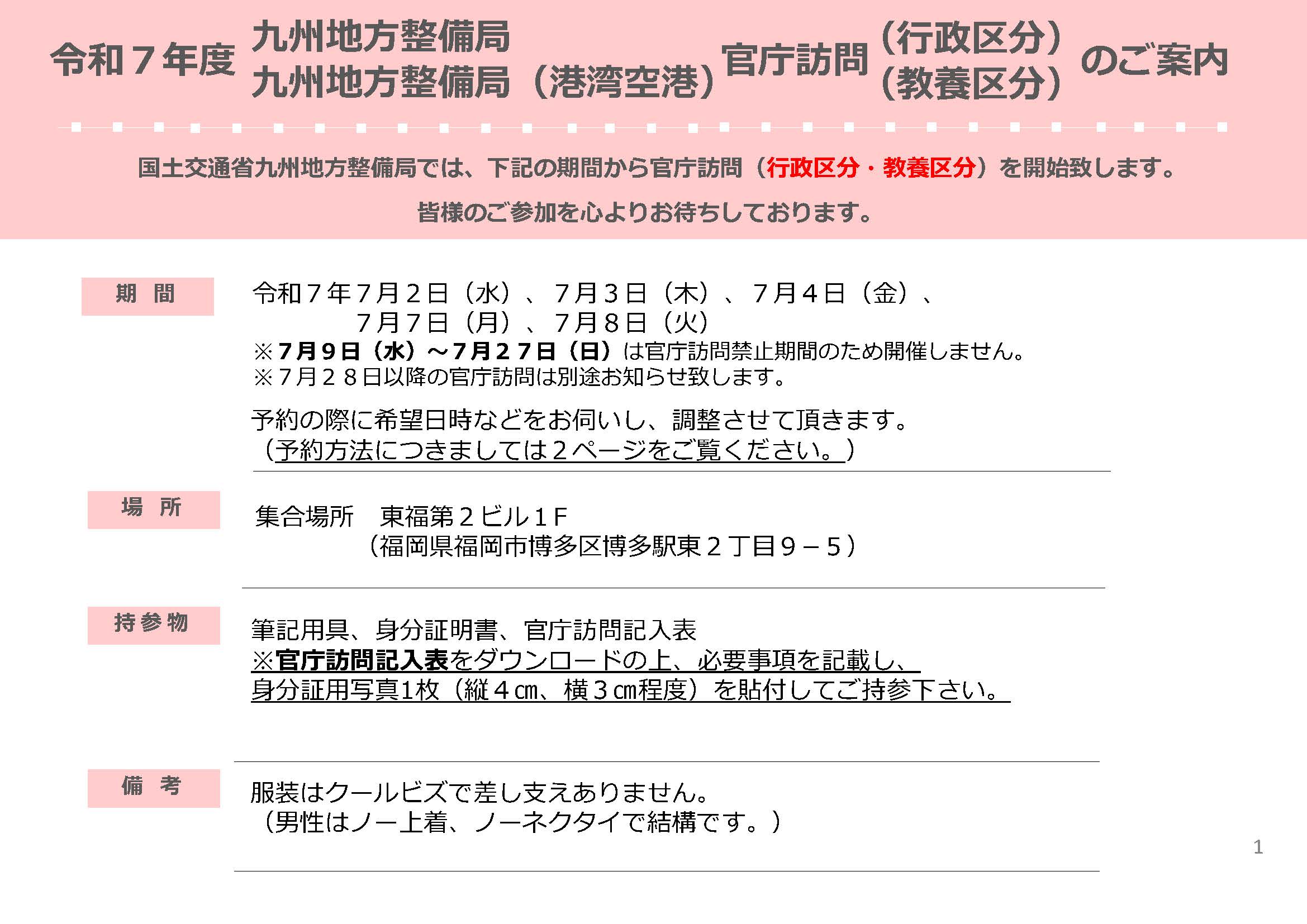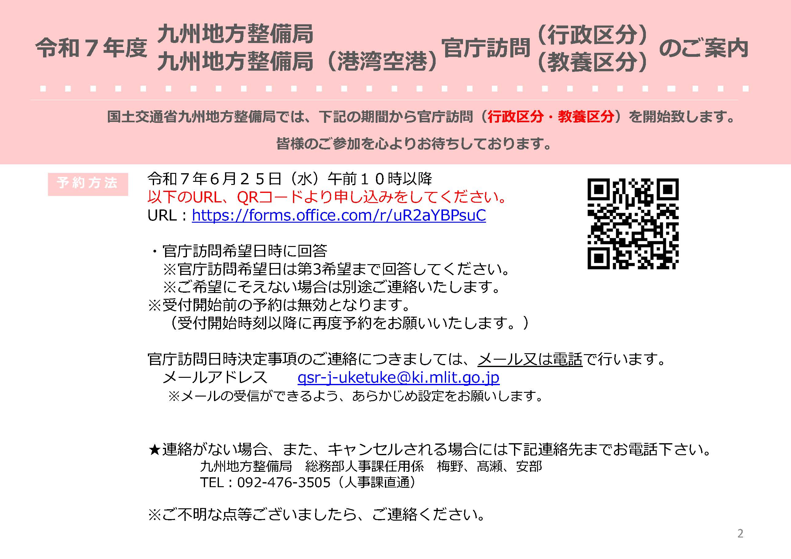 令和7年度九州地方整備局・九州地方整備局(港湾空港) 官庁訪問(行政区分・教養区分)のご案内(PDF)
