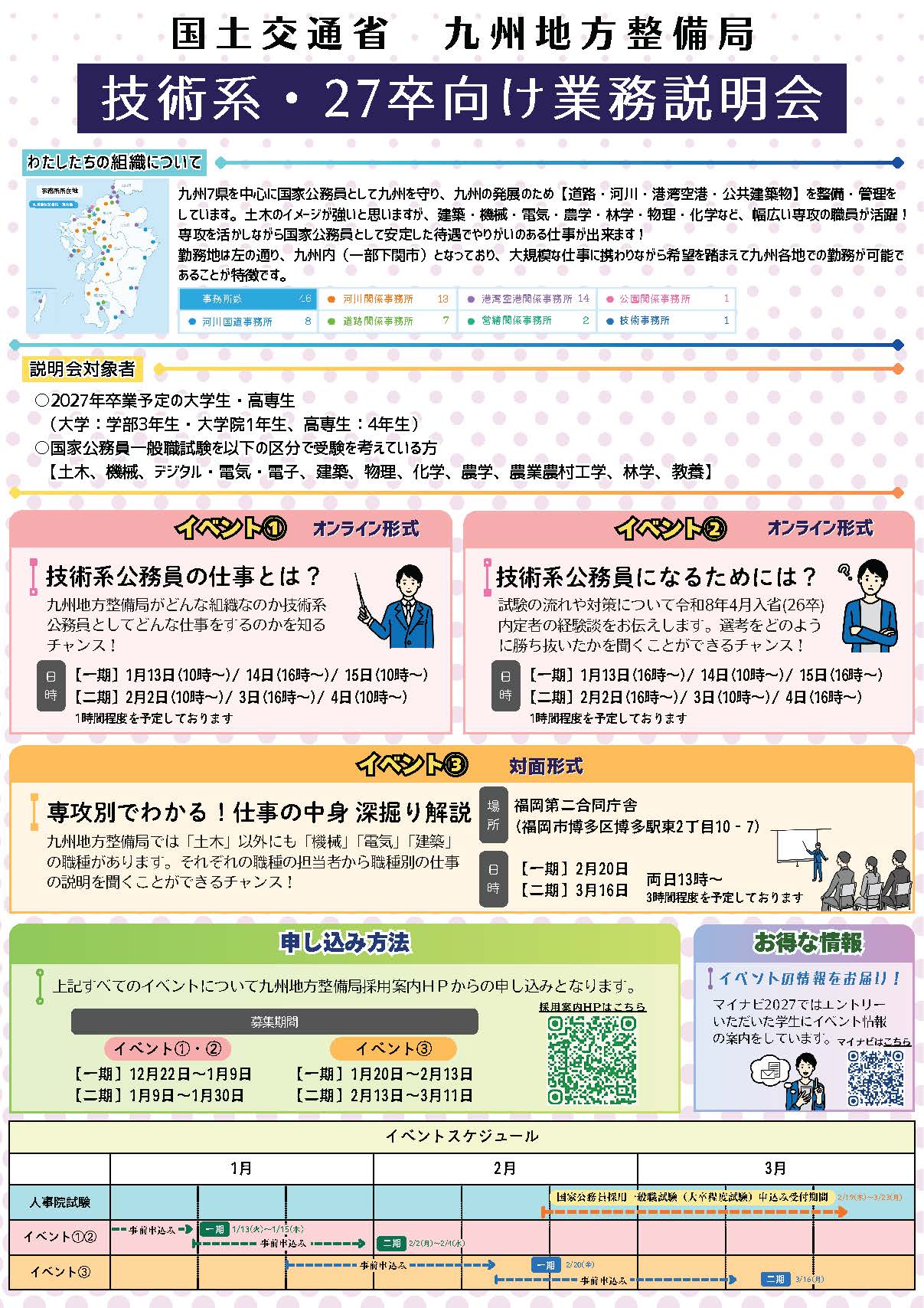 そんな27卒(大学3年、大学院1年、高専4年)の皆様へ。技術系公務員の仕事や選考スケジュールがわかる業務説明会を開催します!