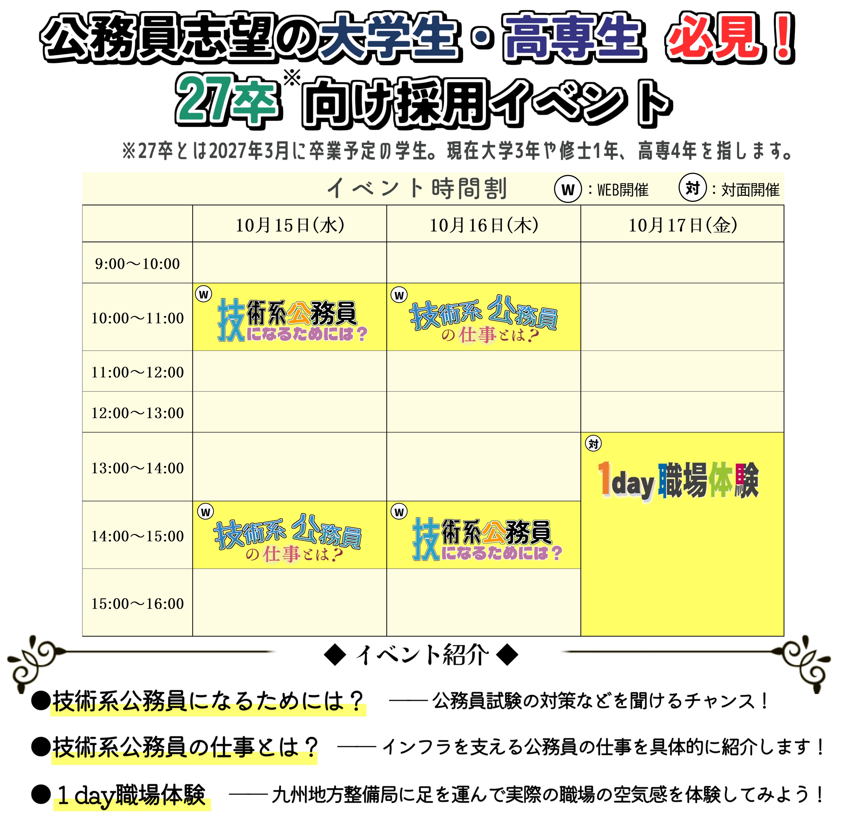 技術系公務員の仕事や選考スケジュールがわかる採用イベントを開催します。