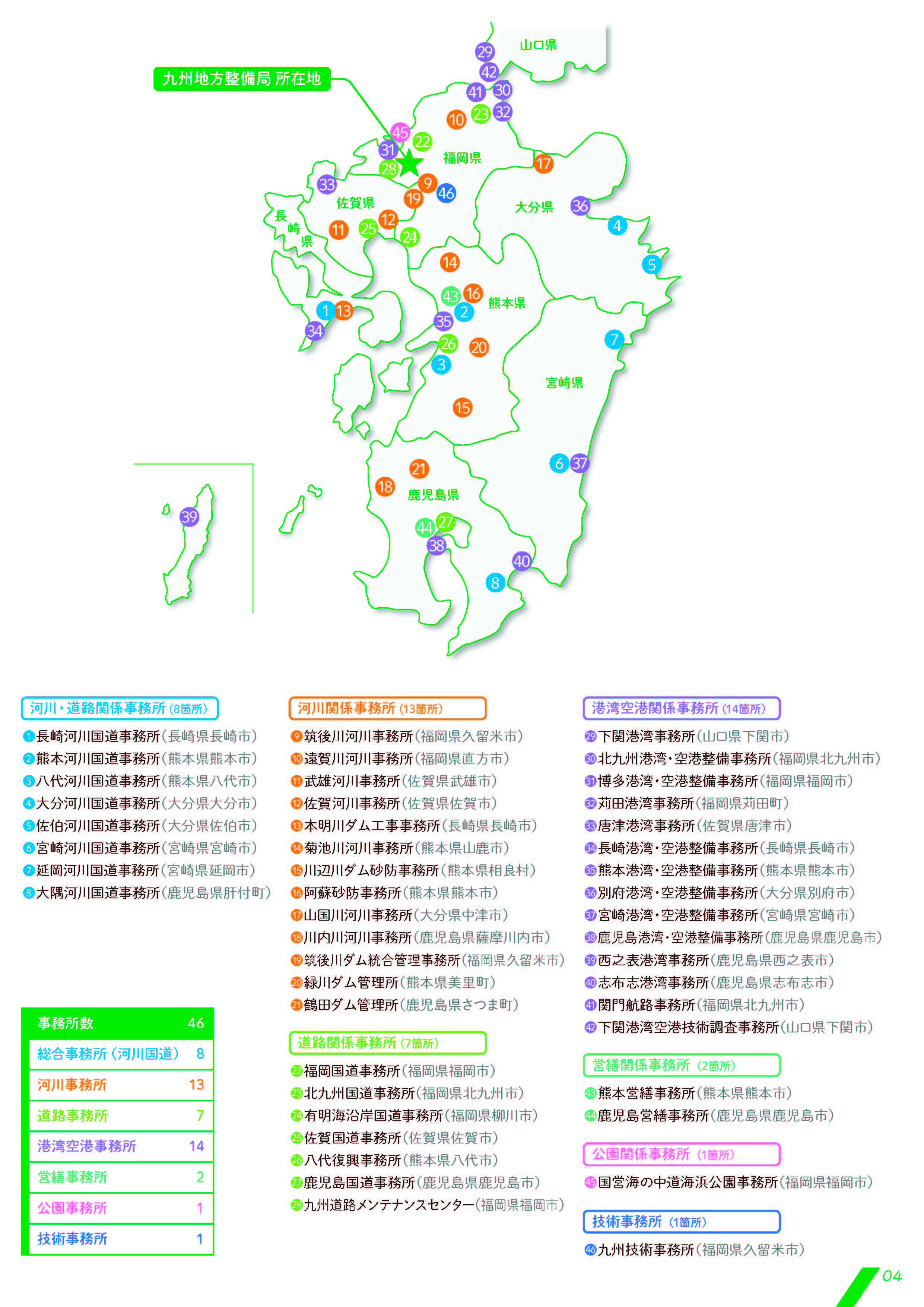 九州地方整備局管内の事務所 (地図参照:PDF)