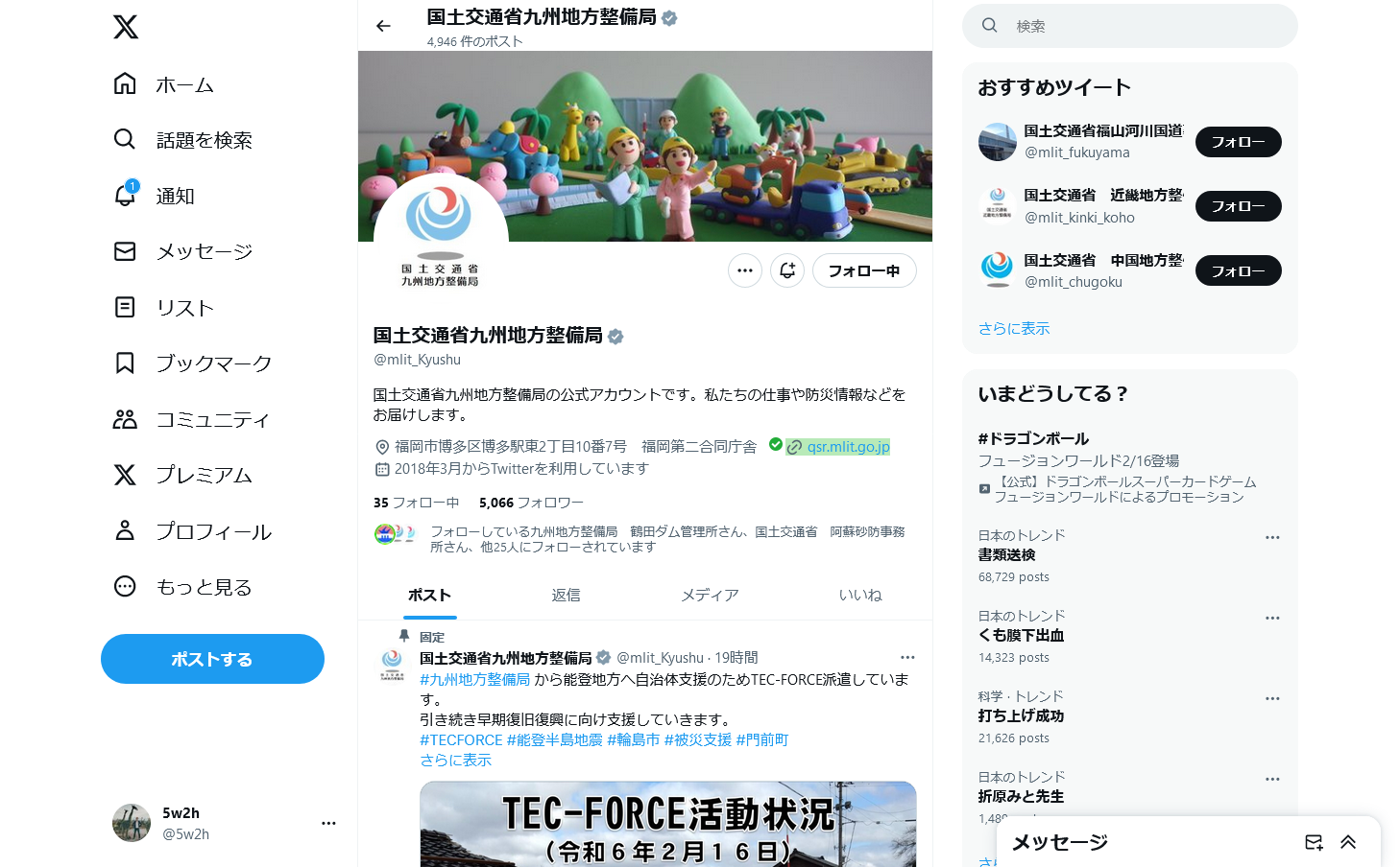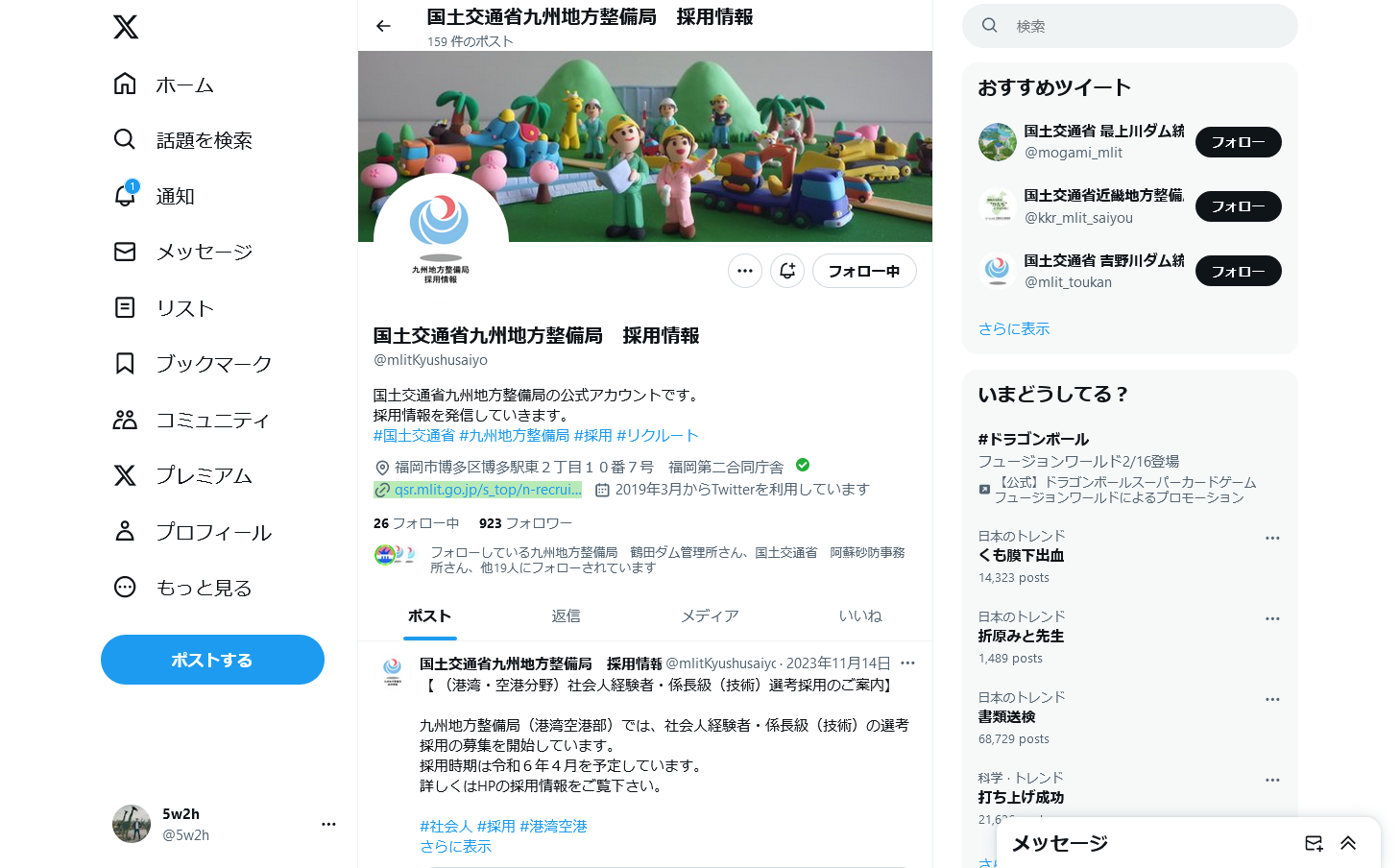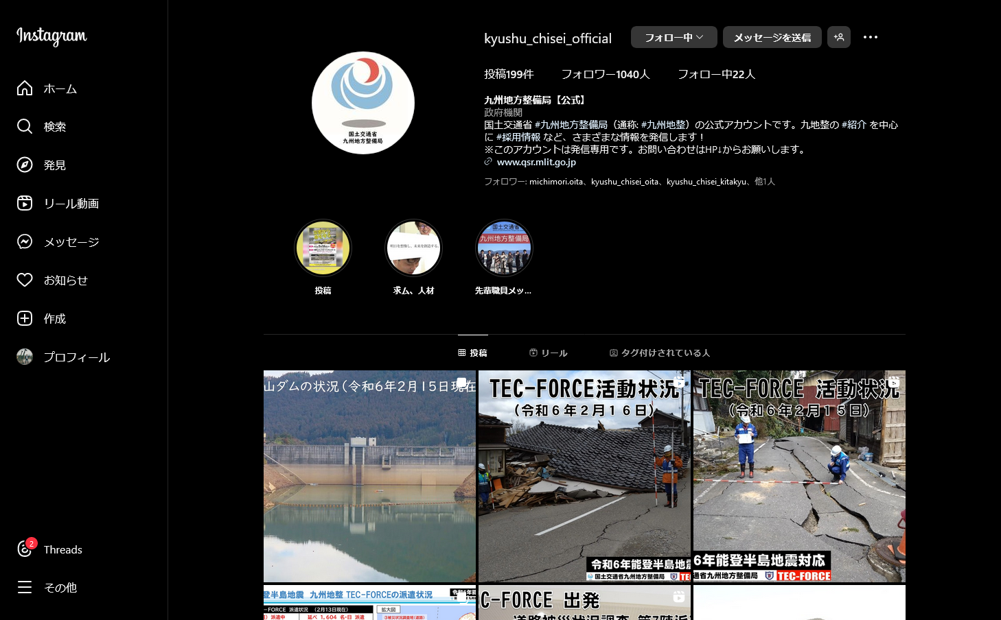 九州地方整備局では、以下のSNS(Social Networking Service”ソーシャルネットワーキングサービス”)にて情報発信を行っています。是非フォローしてくださいね。