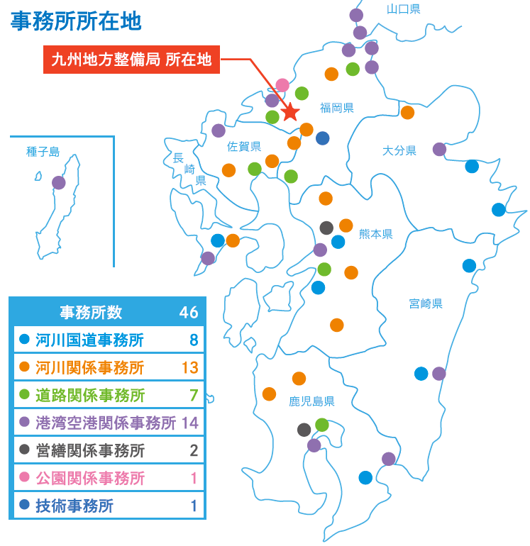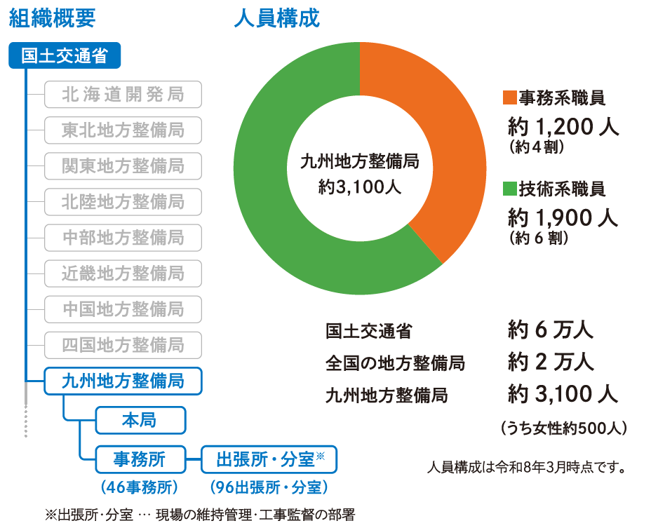 - 配属先は本局または、九州管内の事務所及び出張所に配属となります。