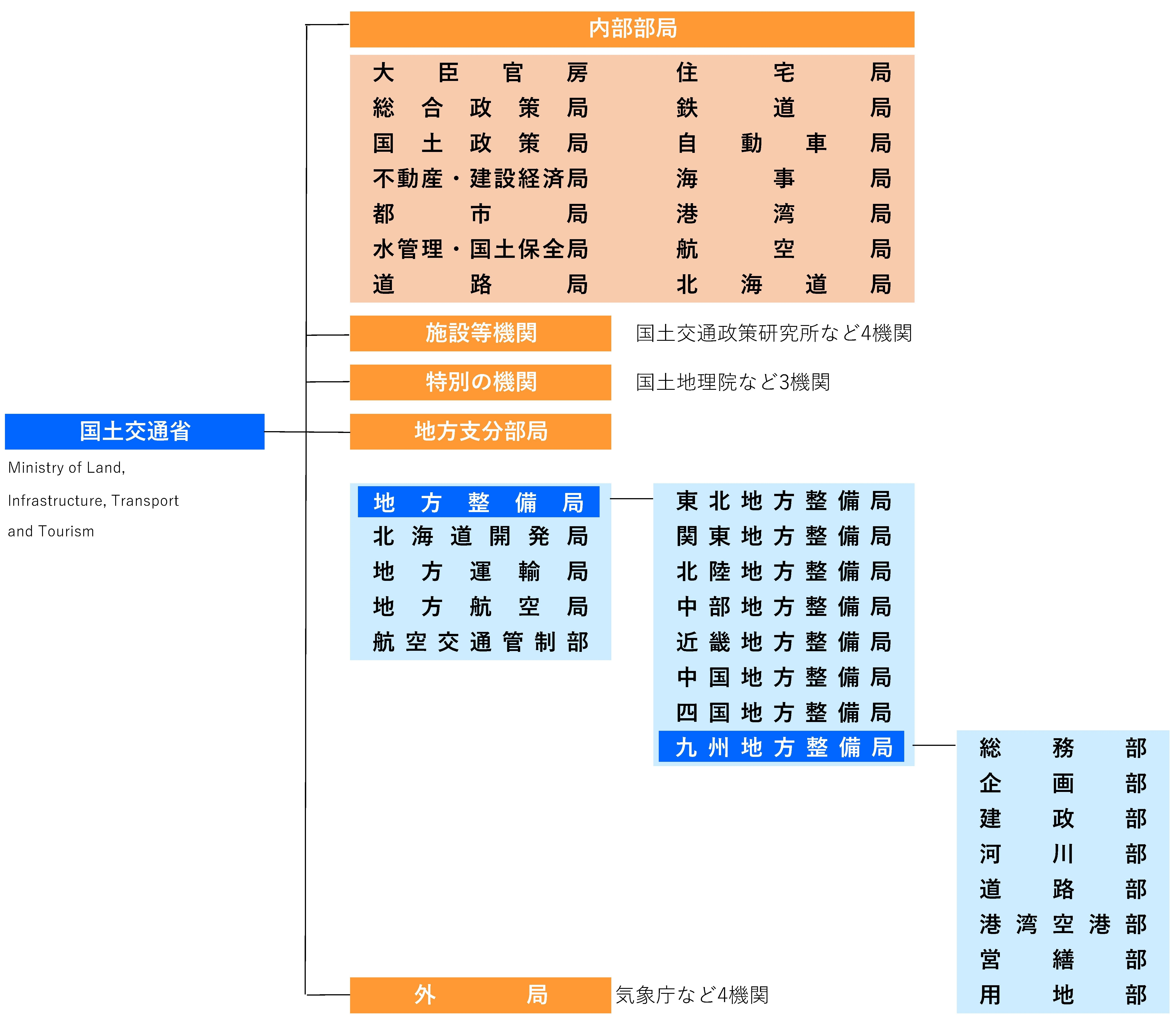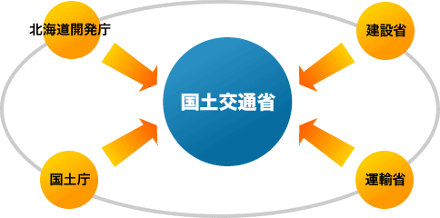 2001年1月に、北海道開発庁、国土庁、運輸省、建設省が統合し、国土交通省へ移行。九州ではそれに伴い、運輸省第四港湾建設局と建設省九州地方建設局が統合し、国土交通省九州地方整備局が誕生しました。 九州地方整備局は、省庁再編による統合のメリットを最大限に活かし、これまで以上に地域に密着した一体的な取り組みを積極的に展開してよりスピーディに、より質の高い行政サービスを実現していきます。