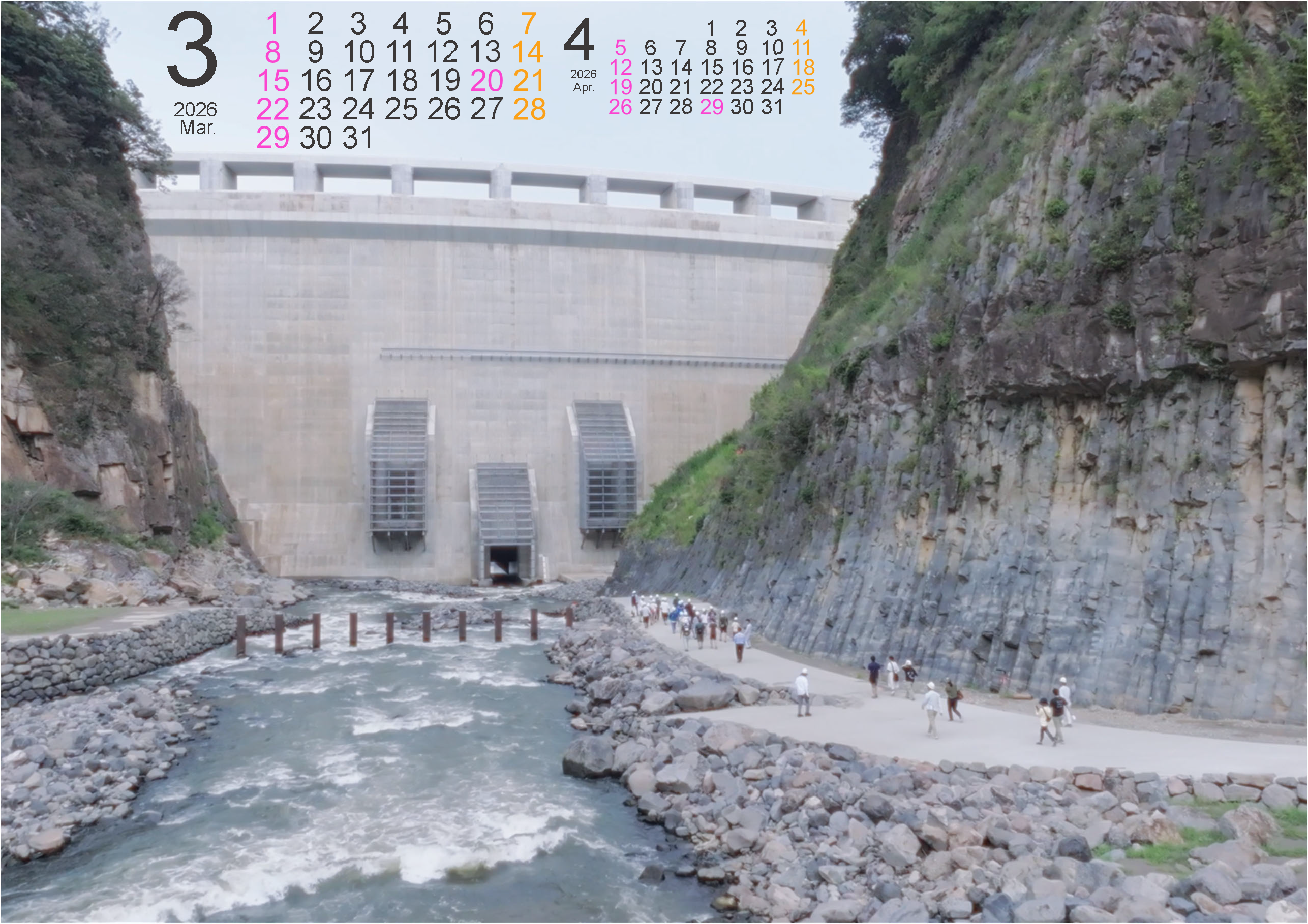そんな、阿蘇立野ダムの見所を紹介したいと思い、阿蘇立野ダムカレンダーを作成しましたので、ぜひ、使用してみてください!
