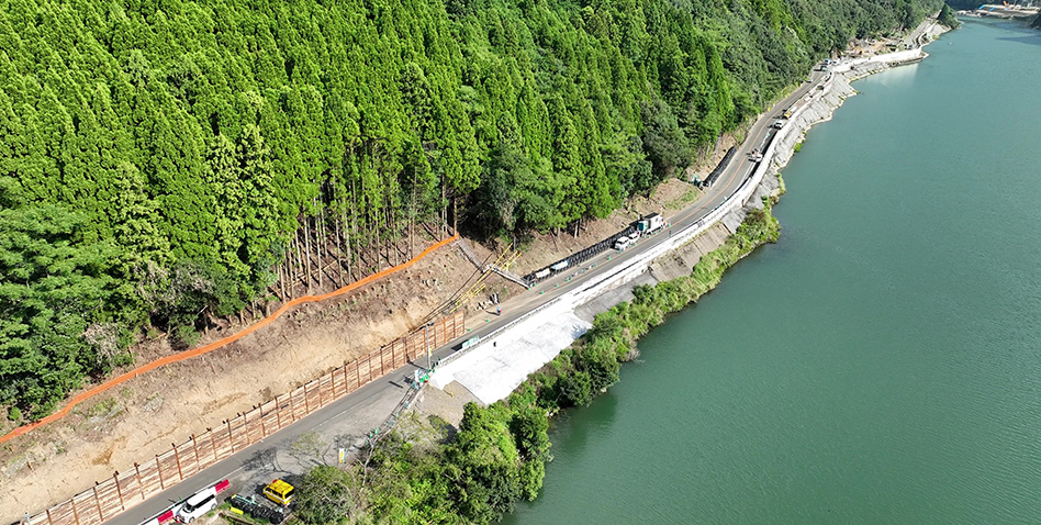 - 改良その1落石防護網施工中・その10擁壁工施工中
